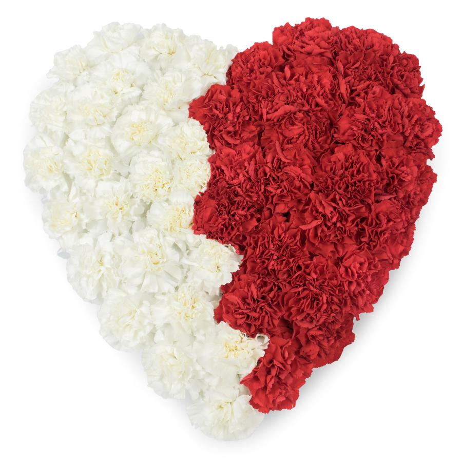 Indulge in the splendor of our Luxurious Carnation Heart Bouquet by Handy Flowers. This beautifully unique arrangement features a rich blend of white and red carnations, expertly arranged into a heart shape that conveys deep emotion and elegance.