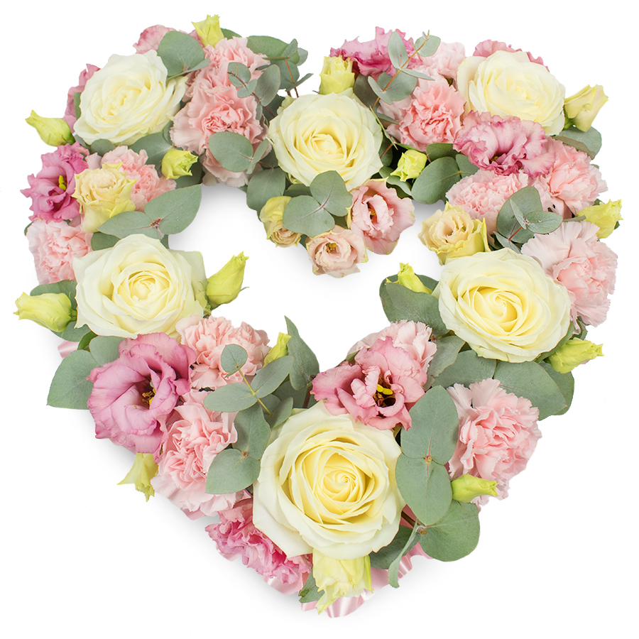 Honor precious memories with our Refined Remembrance Bouquet. This impeccably arranged display includes sophisticated white roses, soft pink carnations, and elegant pink lisianthus, enhanced by the natural beauty of eucalyptus leaves. Each flower is carefully hand-selected, ensuring the freshest quality and a luxurious finish.